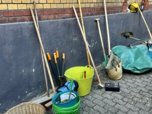 Christoph Kretschmer, Vorsitzender des OV und Stadtratskandidat freute sich, dass einige Nachbarn gekommen waren, um mit anzufassen und dem Unkraut mit Schaufeln, Harken, Heckenschere und Motorsense zu Leibe zu rücken.
