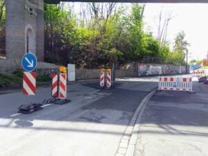 Als erste Sofortmaßnahme wurde die Absperrung am Fuß der Treppe entfernt. Außerdem wurde an einer barrierearmen Stelle der Emser Straße eine provisorische Überquerungshilfe für Fußgänger eingerichtet.